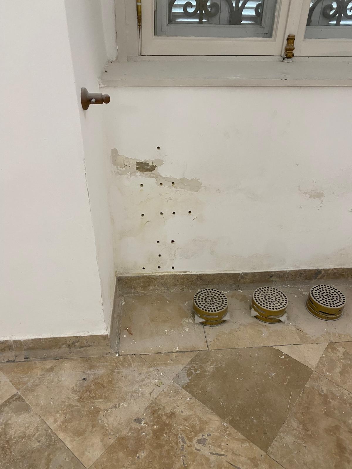 Nedves fal, salétrom, vakolathullás, magas páratartalom